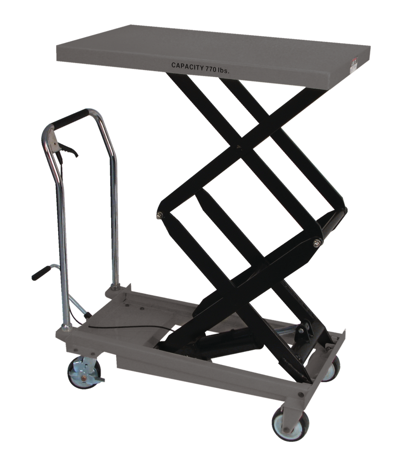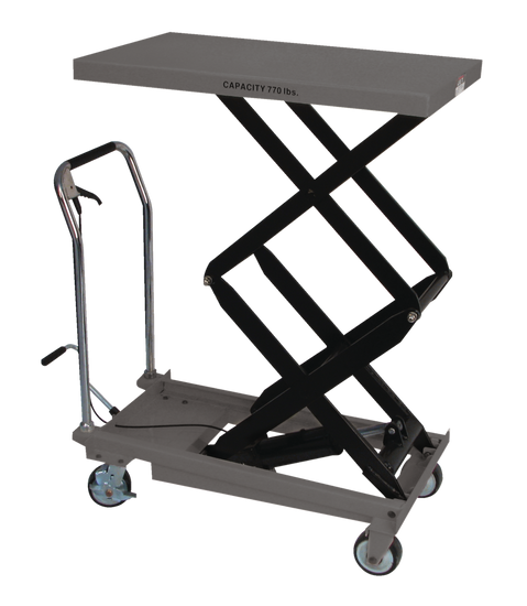 JET® DSLT Series Double Scissor Lift Tables are Ideal for lifting, positioning and transporting heavy materials around the shop, factory, warehouse or office. With a capacity of 770 pounds and a maximum height of 51 inches, JET DSLT Series Double Scissor Lift Tables provide versatility, durability and reliability for your warehouse needs.