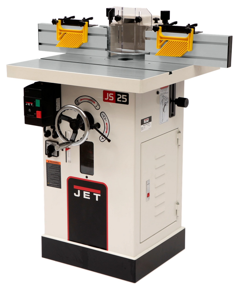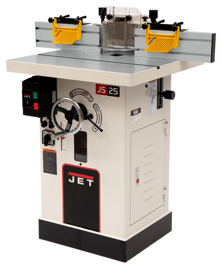 The new model JWS-25X Shaper features a powerful 3HP motor with magnetic controls. The large 25”x 25-1/2” precision ground cast iron table provides plenty of support. Safe, easy cutter set up is assisted by a positive detent spindle lock. The independently adjustable left and right fence has a built in 4” dust port.